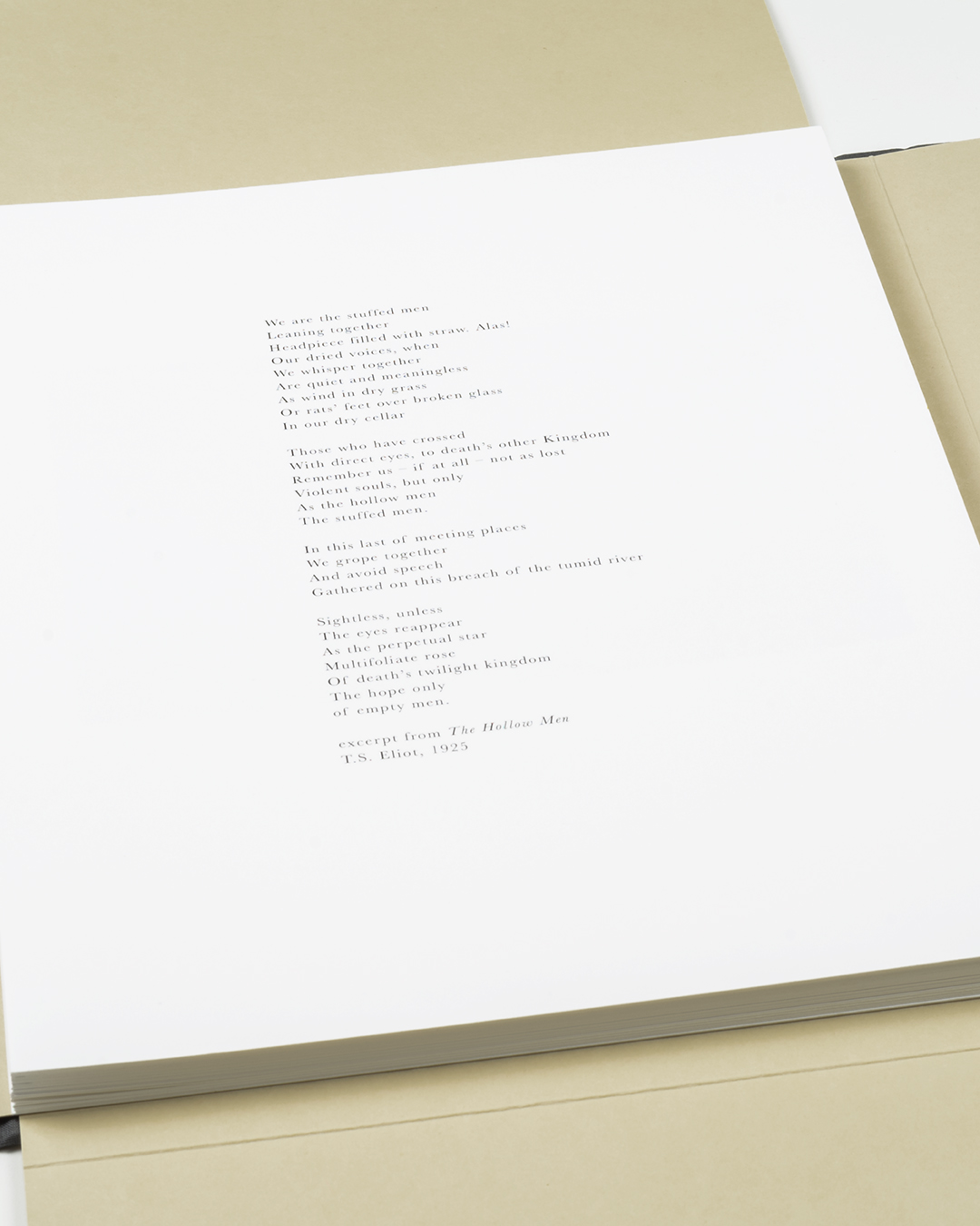 1 text sheet of an excerpt from The Hollow Men by T.S. Eliot, 1925 on Canson Rag Photographique