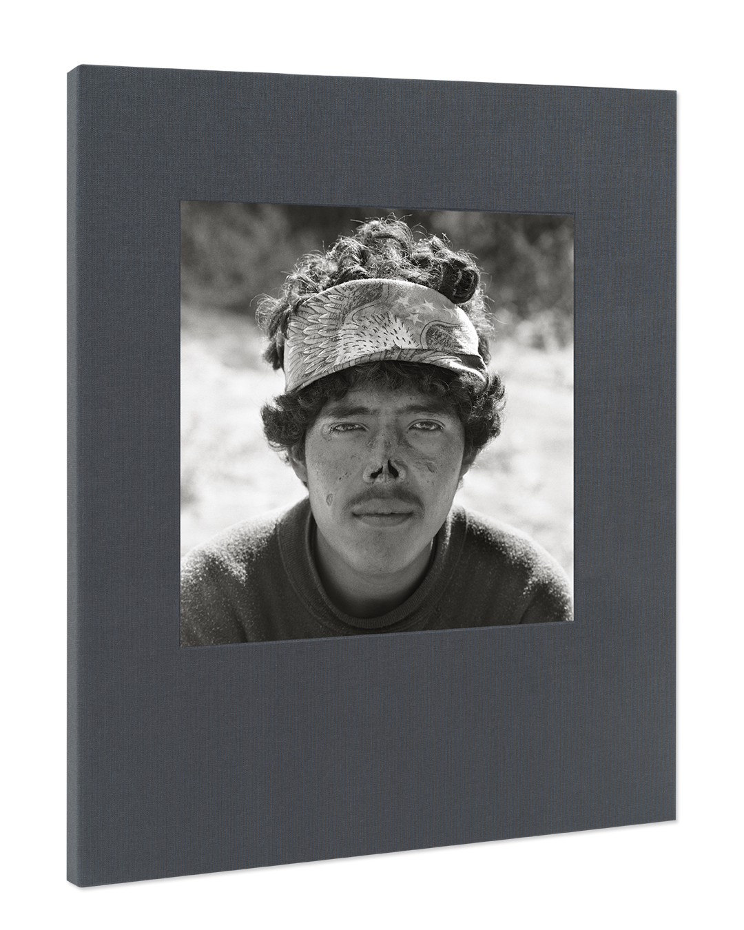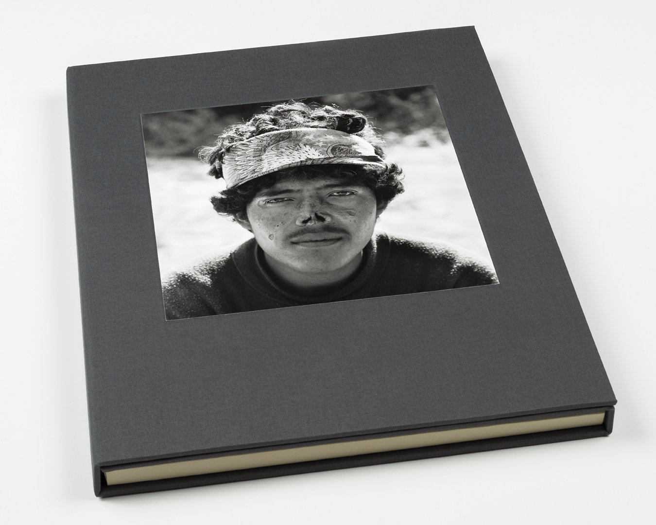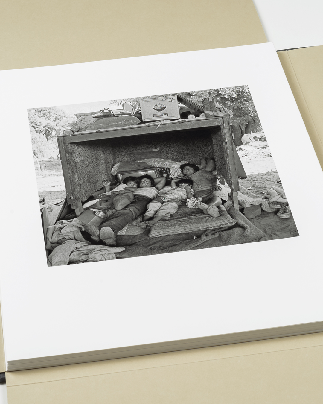 Bookcloth covered binders board with tipped-in photographs and archival folder