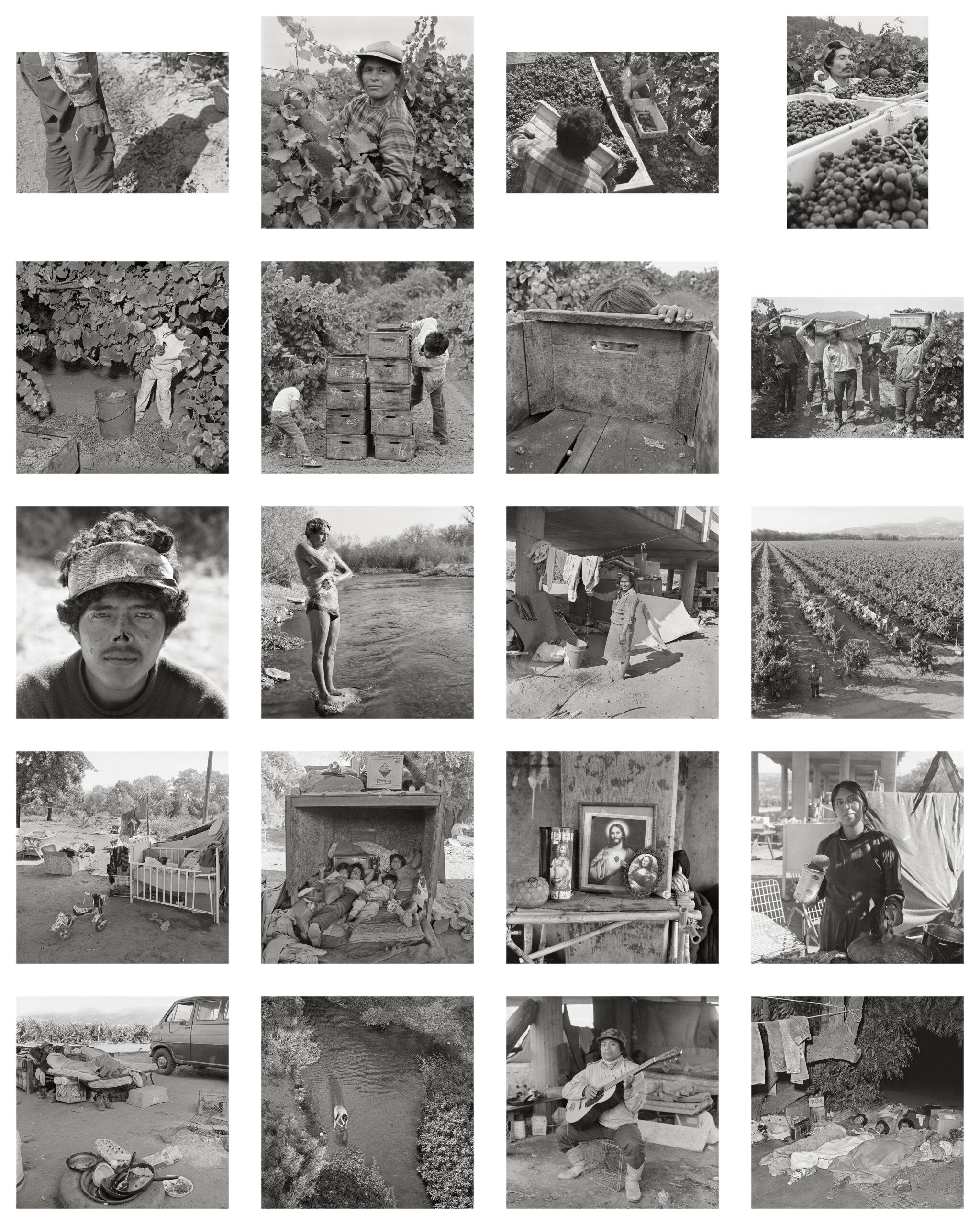 Los Vendimiadores experiences the lives of migrant grapepickers in the vineyards and while living with them under a bridge near the Russian River in the wine country of Northern California.